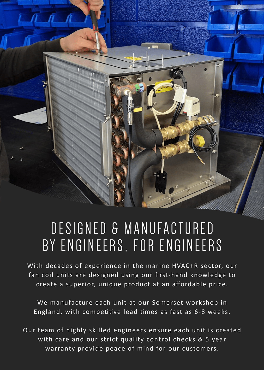 Our units comes with a 5 year warranty for further peace of mind that our fan coil units are the perfect solution for your needs.