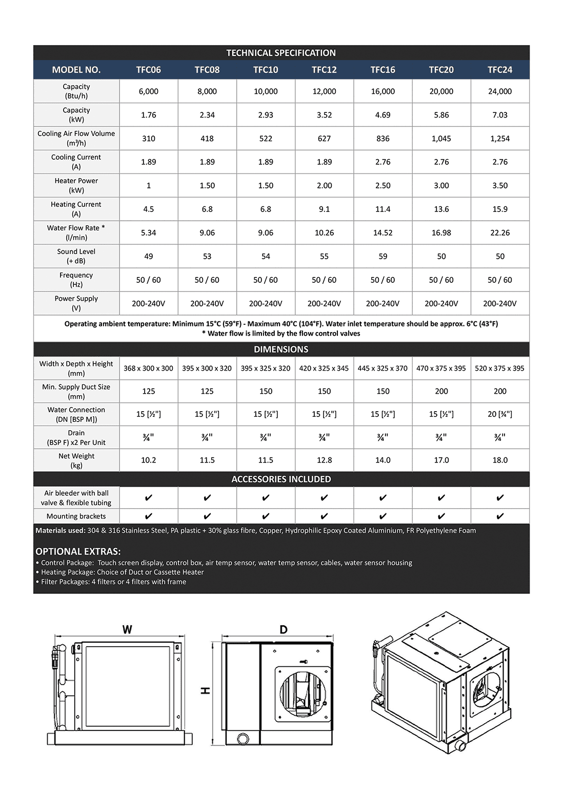 Our extensive range of fan coil units are available in numerous sizes, from 6000BTU to 24000BTU. They are carefully designed to operate in even the most hazardous of environments, with composite fans, corrosion resistant protection on the coils and stainless steel casing.